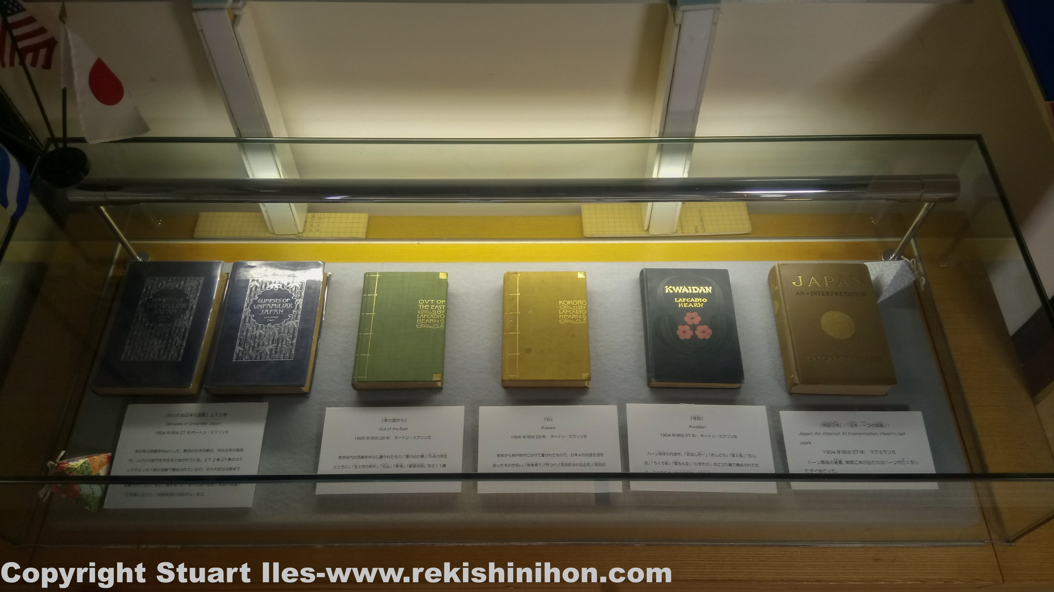 His stay in Kumamoto were very productive. Hearn had written about life in Japan since he arrived and his stories began to appear in ‘The Atlantic Monthly’ as well as some other syndicated publications in the U.S. These stories became the basis of the 2 volume ‘Glimpses of Unfamiliar Japan’ (1894) series. He also published ‘Out of the East’and ‘Kokoro’. Local Kumamoto followers believe “With Kyushu Students’, ‘The Stone Buddha’ and ‘The Dream of a Sunny Day’ are all based on life in Kumamoto and they are very proud of this. And finally while in Kumamoto his son, Kazuo was born.