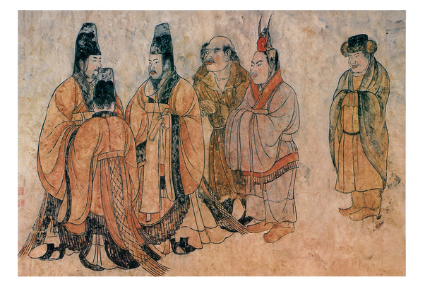 Images of envoys from China and Korea around the 5th-6th century.