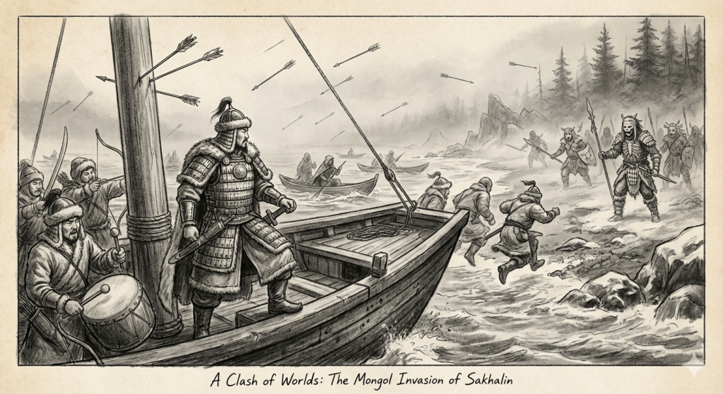 One year after the Amur fell, the Mongol war machine took to the sea. They launched a punishing invasion of Sakhalin, hunting the Kugi into the frozen heart of their island. It was more than a border skirmish, it was a clash of worlds, where the unstoppable force of the Mongol cavalry met the fierce, maritime and ghost like resistance of the north.